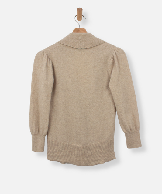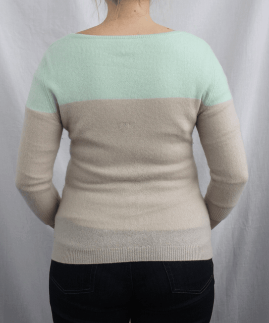 Beige and Mint Cashmere Round Neck Cardigan by Madeline