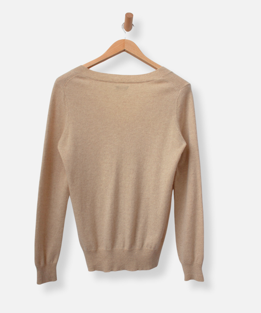 Beige Cashmere V Neck Cardigan by House of Cashmere