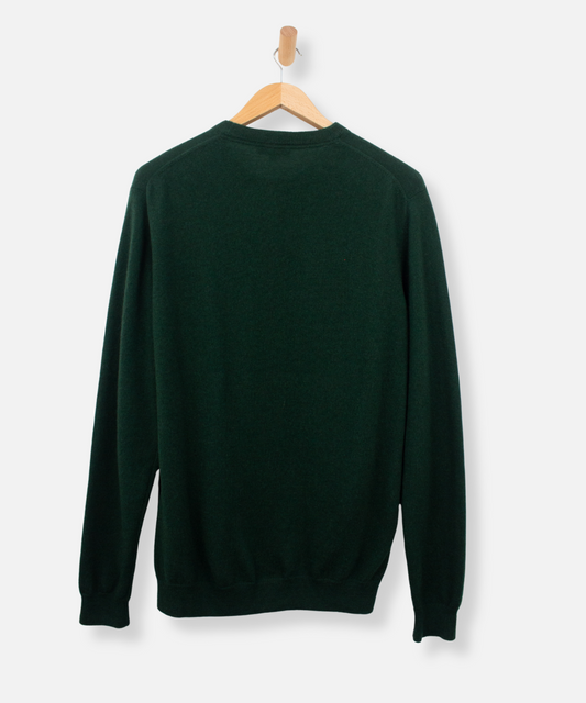 Dark Green Cashmere V Neck Jumper by Avenue Foch