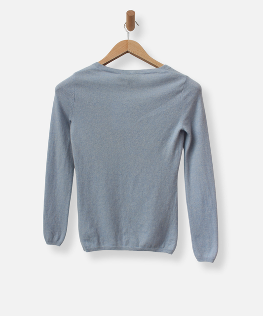 Powder Blue Cashmere Round Neck Jumper by Robert Ley