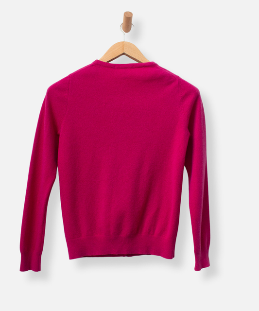 Hot Pink Cashmere Crew Neck Cardigan by Witty Knitters