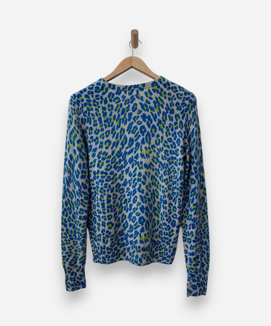 Beige and Blue Leopard Print Crew Neck Jumper