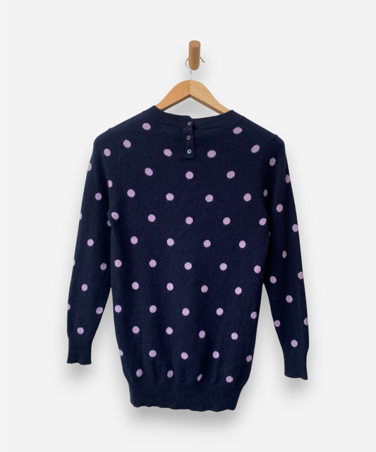 Navy and Purple Polka Dot Cashmere Crew Neck Jumper by JCrew