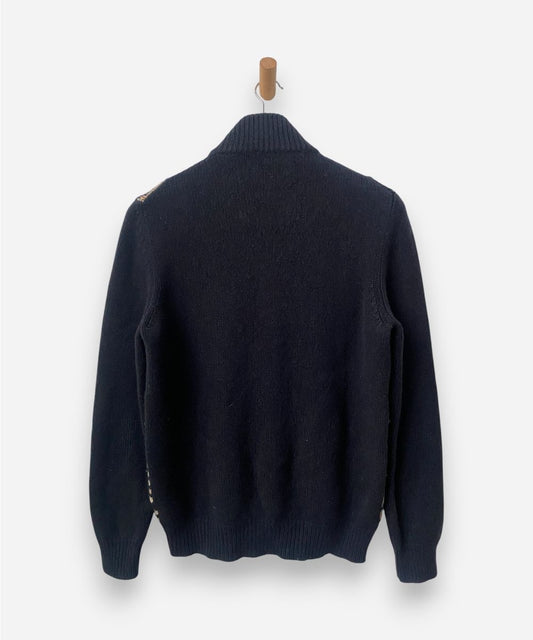 Navy and Neon Chunky Knit Cashmere Zip Up Cardigan by Malo