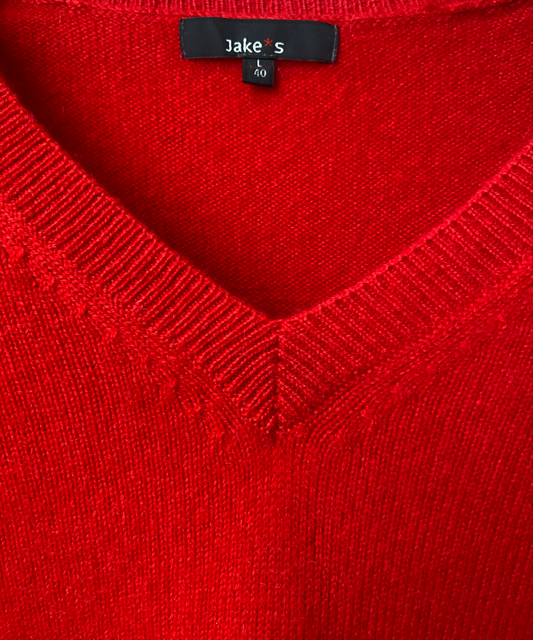 Red Medium Knit Cashmere V Neck Jumper by Jake S