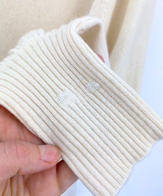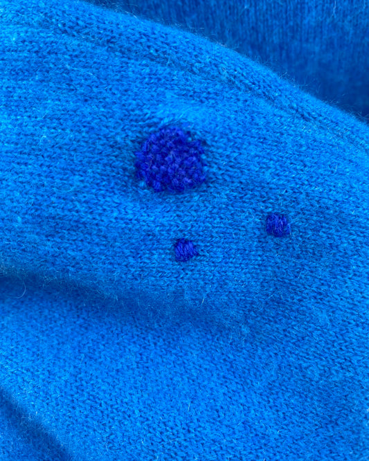 Embrace your fun and unique side with our collection of upcycled and visibly mended women’s secondhand cashmere knitwear. Each piece is carefully restored, showcasing vibrant and colourful mending that adds a sprinkling of individuality. From cosy cashmere sweaters and cardigans to pullovers and vests, our upcycled and visibly mended cashmere knitwear offers eco-conscious fashion that is super fun and great for the planet.