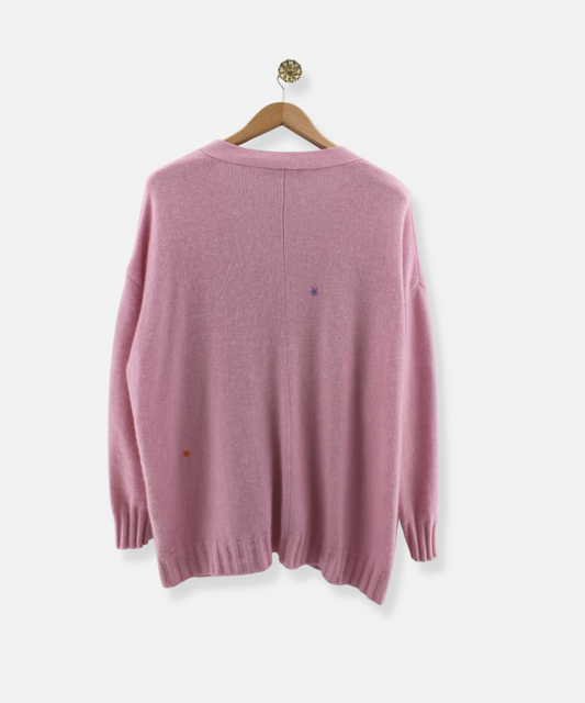 Pink Cashmere V Neck Cardigan by Lielow