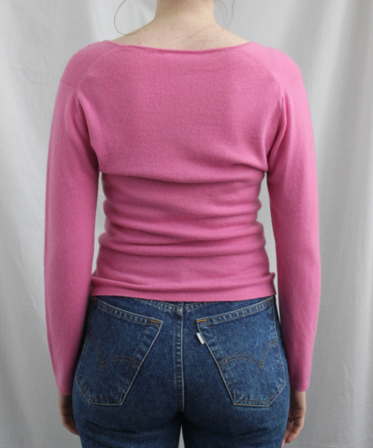 Pink Cashmere V Neck Jumper by Johnstons of Elgin