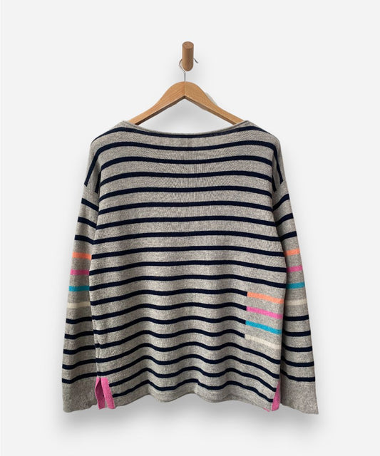 Grey, Navy and Neon Striped Cashmere Round Neck Jumper by White Stuff
