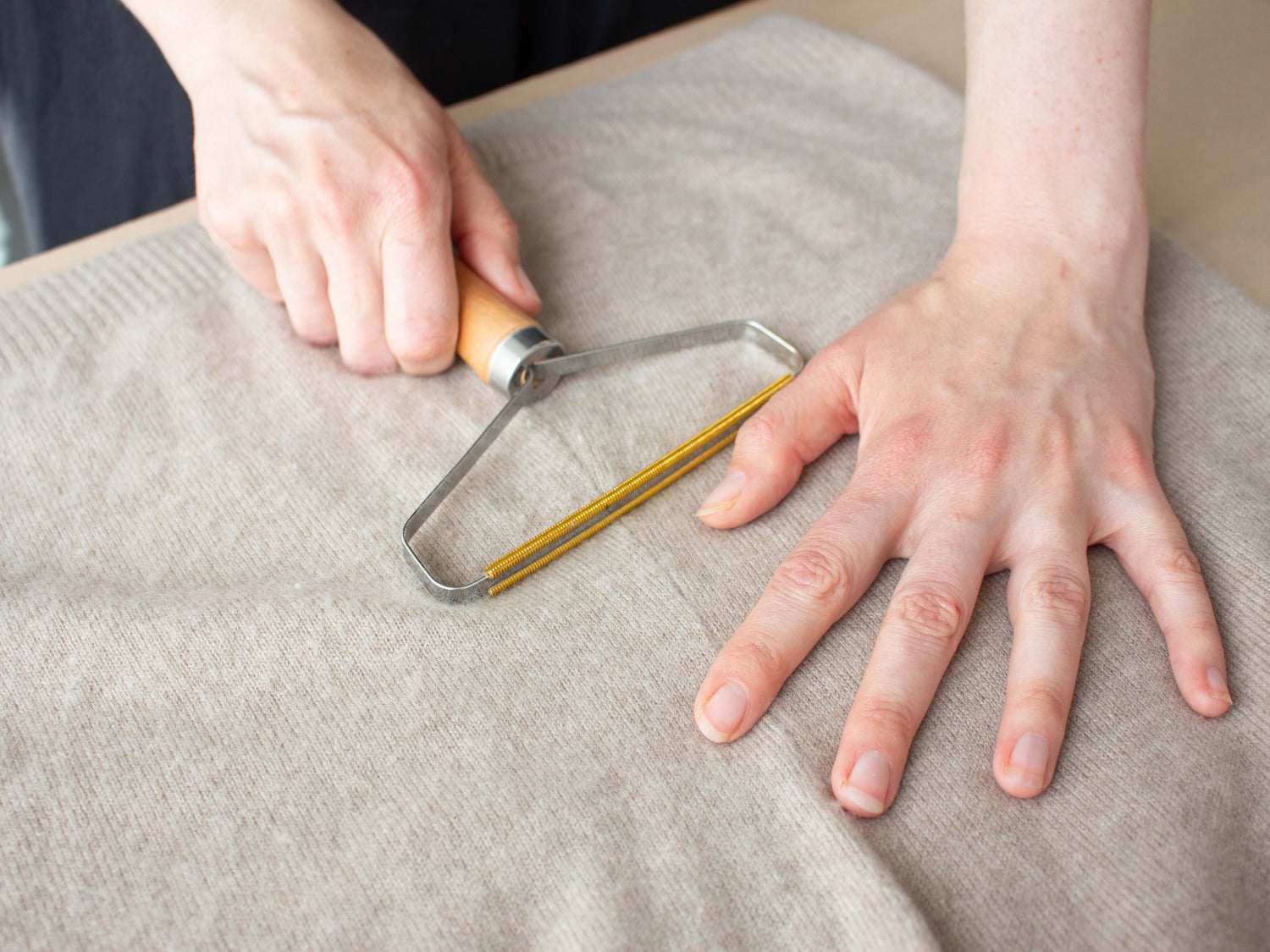 Pills can be a common problem with cashmere and each piece we source is carefully de-pilled to achieve the best finish ahead of rewear.