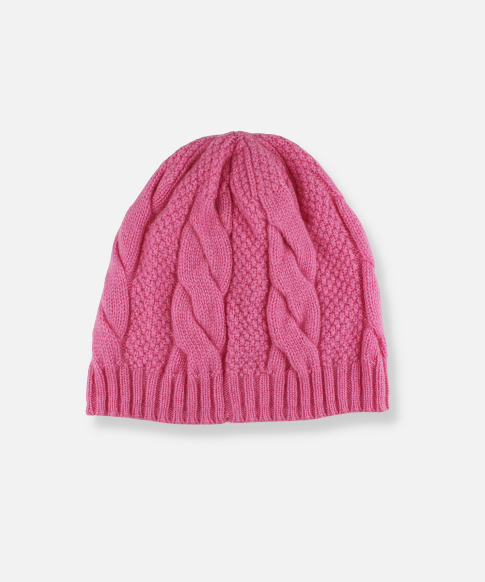 Pink Cable Knit Cashmere Beanie Hat by Selina Scott